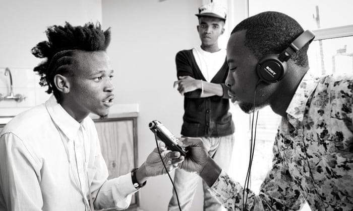 Young people from the Future Positive Young Reporter group record interviews and opinions of those affected by HIV at the Nolungile Youth Clinic in Khayelitsha, South Africa. Photograph: Sydelle Willow Smith