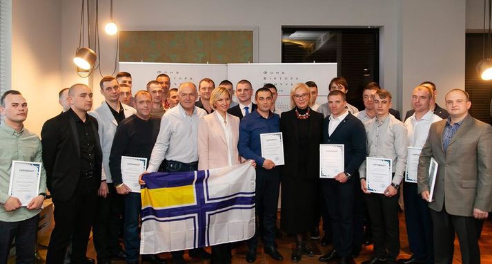 Олена та Віктор Пінчук вручили сертифікати на квартири 24-м українським морякам, звільненим із російського полону